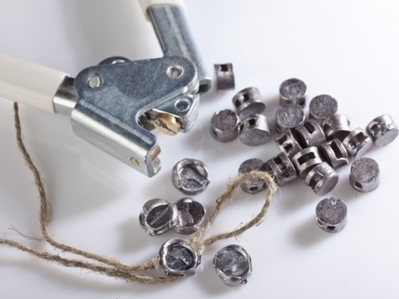 Свинцовые пломбы — это самый популярный пломбировочный материал, используемый с пломбиратором. Для установки такой пломбы Вам нужно будет лишь сжать изделие с помощью специального инструмента (пломбиратора). Изделие представляет собой свинцовую шайбу (из сплава С0 или С1), ребро которой снабжено отверстиями. В эти отверстия продевается шпагат или проволока.