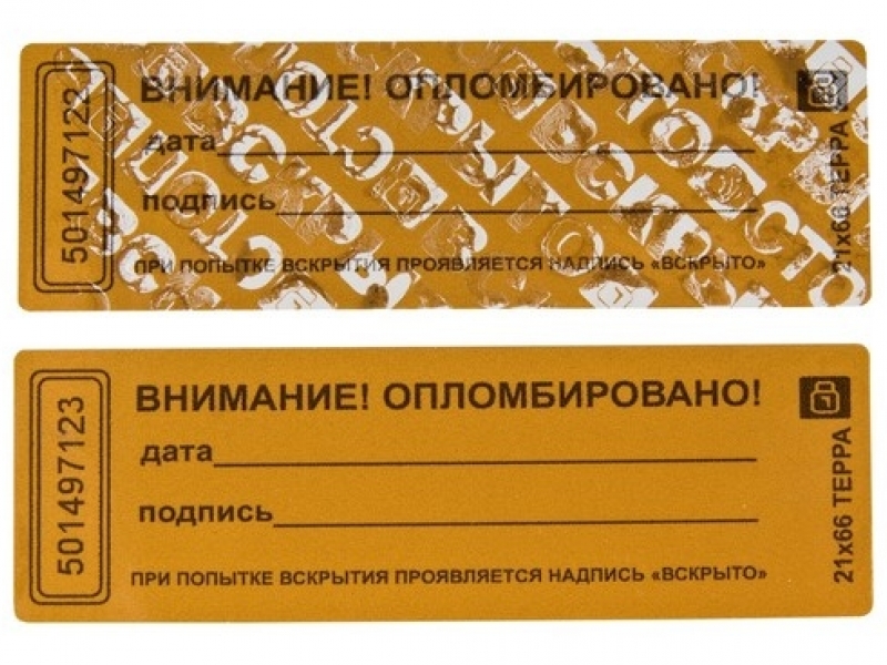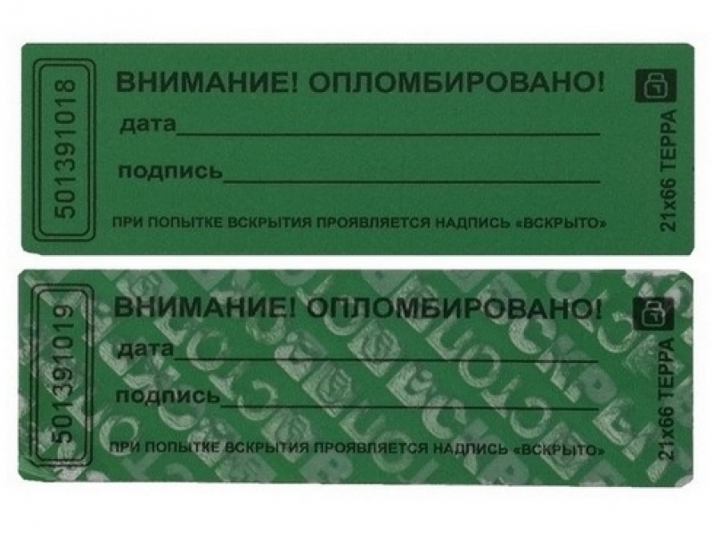 Пломбировочные наклейки "Терра" 21 х 66 мм позволяют вскрывать попытки постороннего доступа к опломбированному имуществу, пломбу нельзя снять тайным образом, благодаря качественному адгезионному слою, а также контрольной прослойке оставляющей различимый след. Логотип "Аспломб" проявляется на месте установки, при вскрытии пломбы, при заказе тиража от 50 000 экз. можно дополнить дизайн собственной эмблемой.