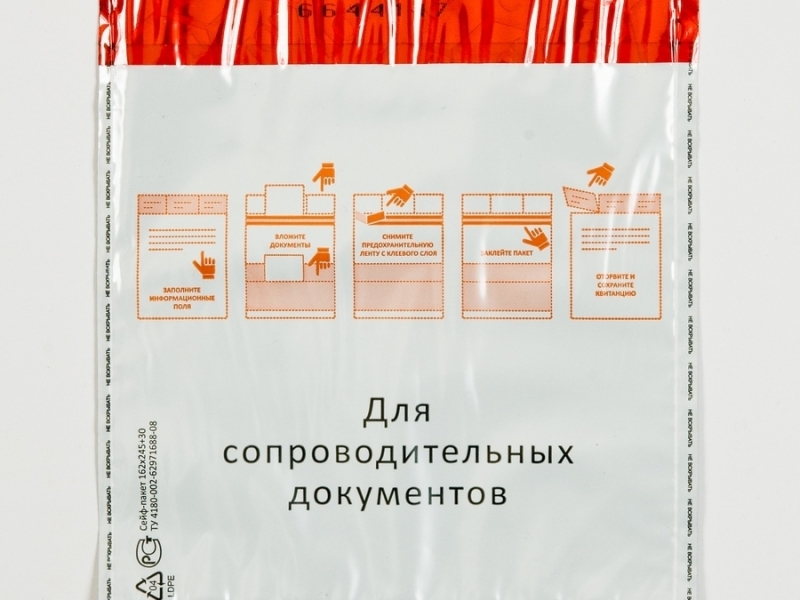 Каждый сейф-пакет маркирован индивидуальной цифровой комбинацией (номером), штрихкодом и снабжен прозрачным карманом на одной из сторон (туда можно поместить документы, сопровождающие груз).